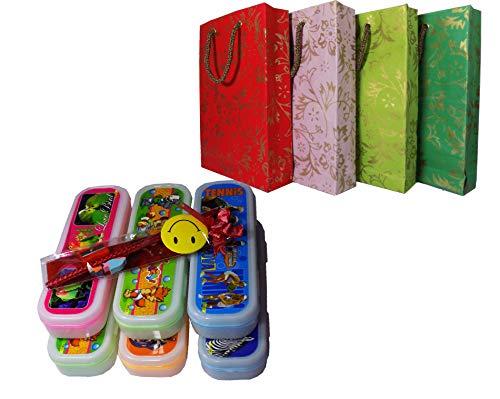 Best Return Gift Item For Kids. 5 Pcs Stationery Set In 1 Pencil Box. If You Will Choose with Royal Handmade Goodies Bag Your Return Gift Looks Very Premium . premium printed party favour bags by Paper to bag to make re-gifting a bliss. Perfect favour bags for parties, ceremonies and give-aways! These bags can be great way to give birthday presents, goodies and gifts. Available in multiple colours. 100% handmade and hence slight difference in size can occur. Made in India