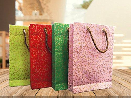 Brown Leaf Royal Golden Print Party Favour Handmade Goodies Paper Bag, 8 x 5.7 x 1.75 Inch (Multicolour) – Set of 36